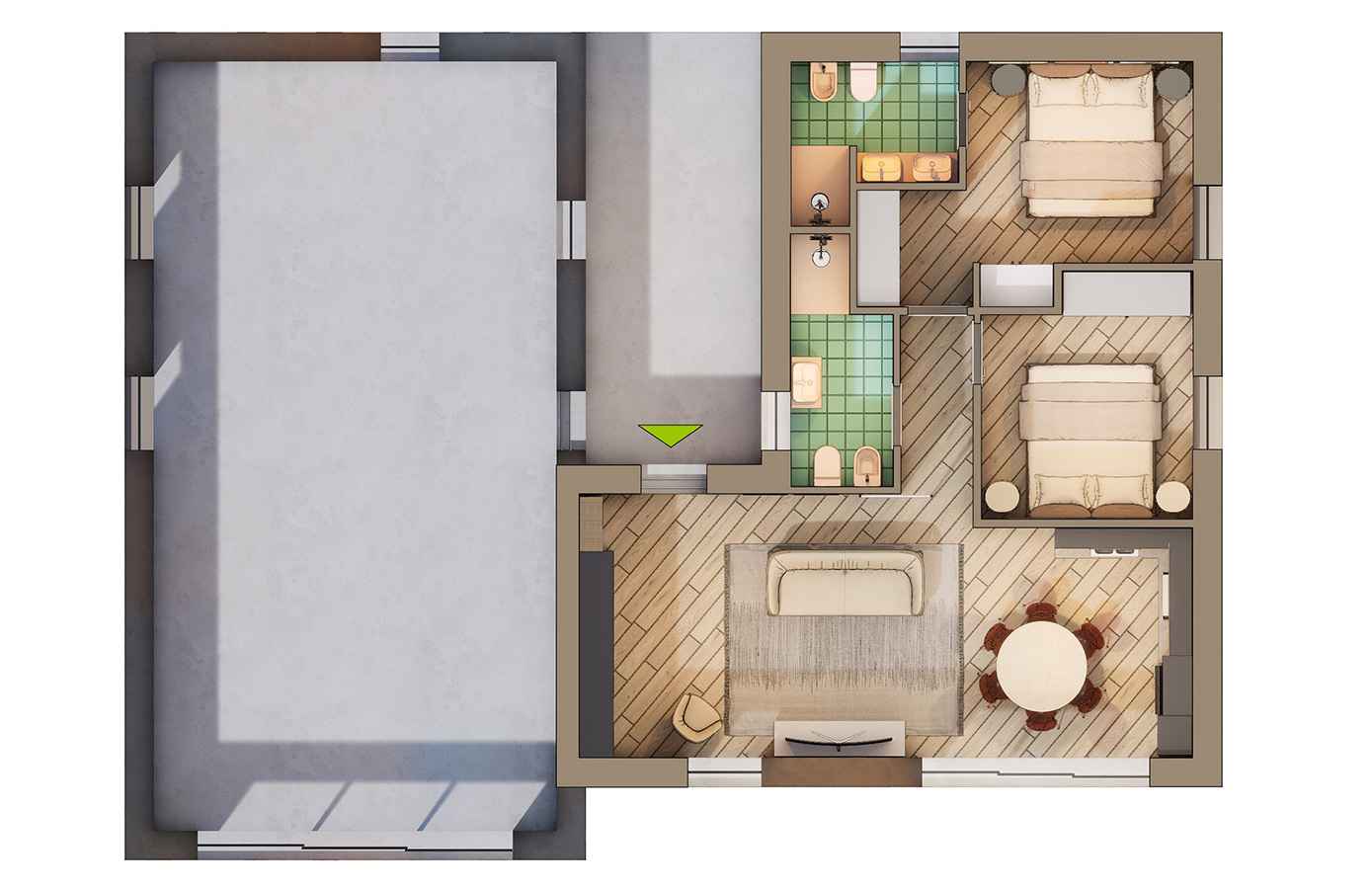 NEST offre la massima flessibilità abitativa: grazie alla sua progettazione modulare, può essere suddivisa in fino a quattro appartamenti indipendenti. Questa soluzione permette di adattare gli spazi a diverse esigenze, che si tratti di una residenza multifamiliare, di un investimento a reddito o di una casa da condividere mantenendo la propria privacy.